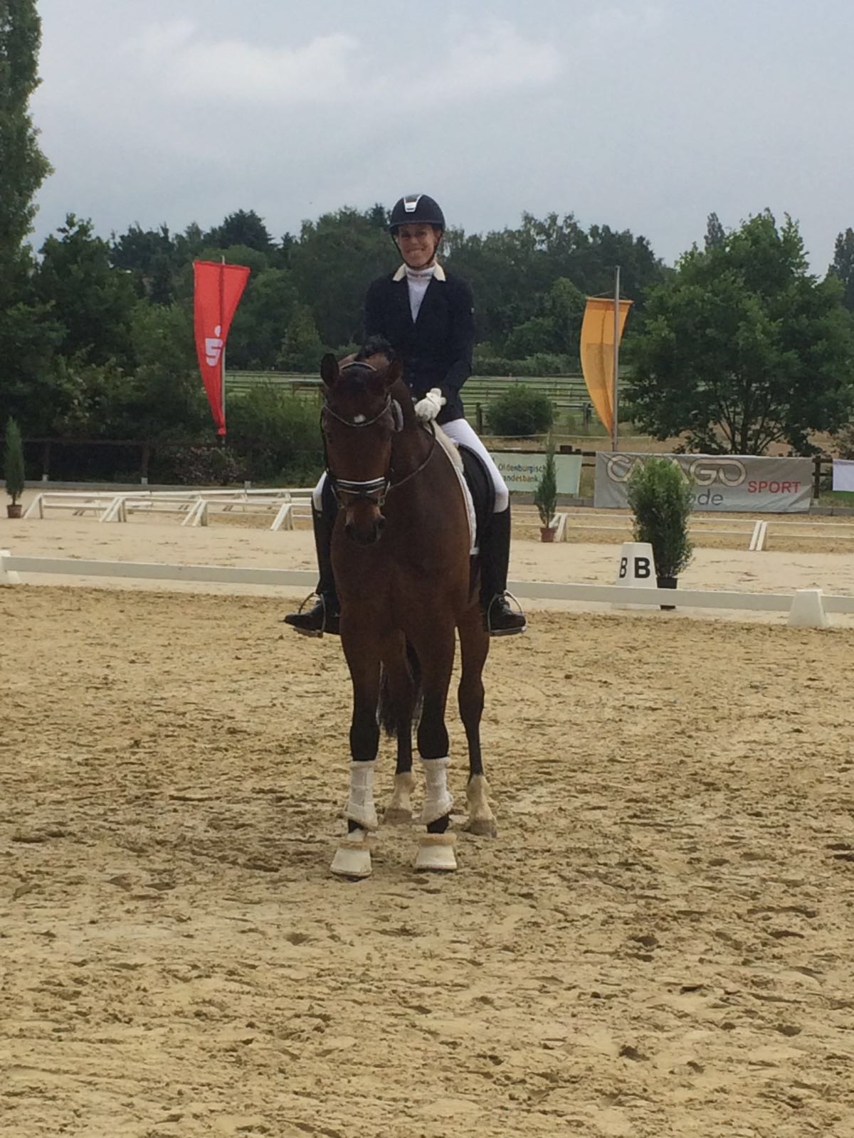 On June 17th, in Osnabruck, Germany, Andrea Muller-Kersten came in second with Bellagio in the Dressurpferde prufung A (8,5) and second with Quinto in the Dressurpferde prufung L (8,1). The day after, in Bornival, Elisabeth won with Edira the Five Year old test. Very Happy Team!