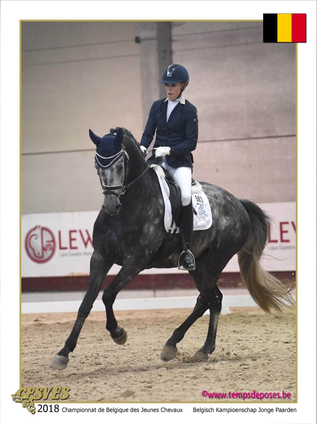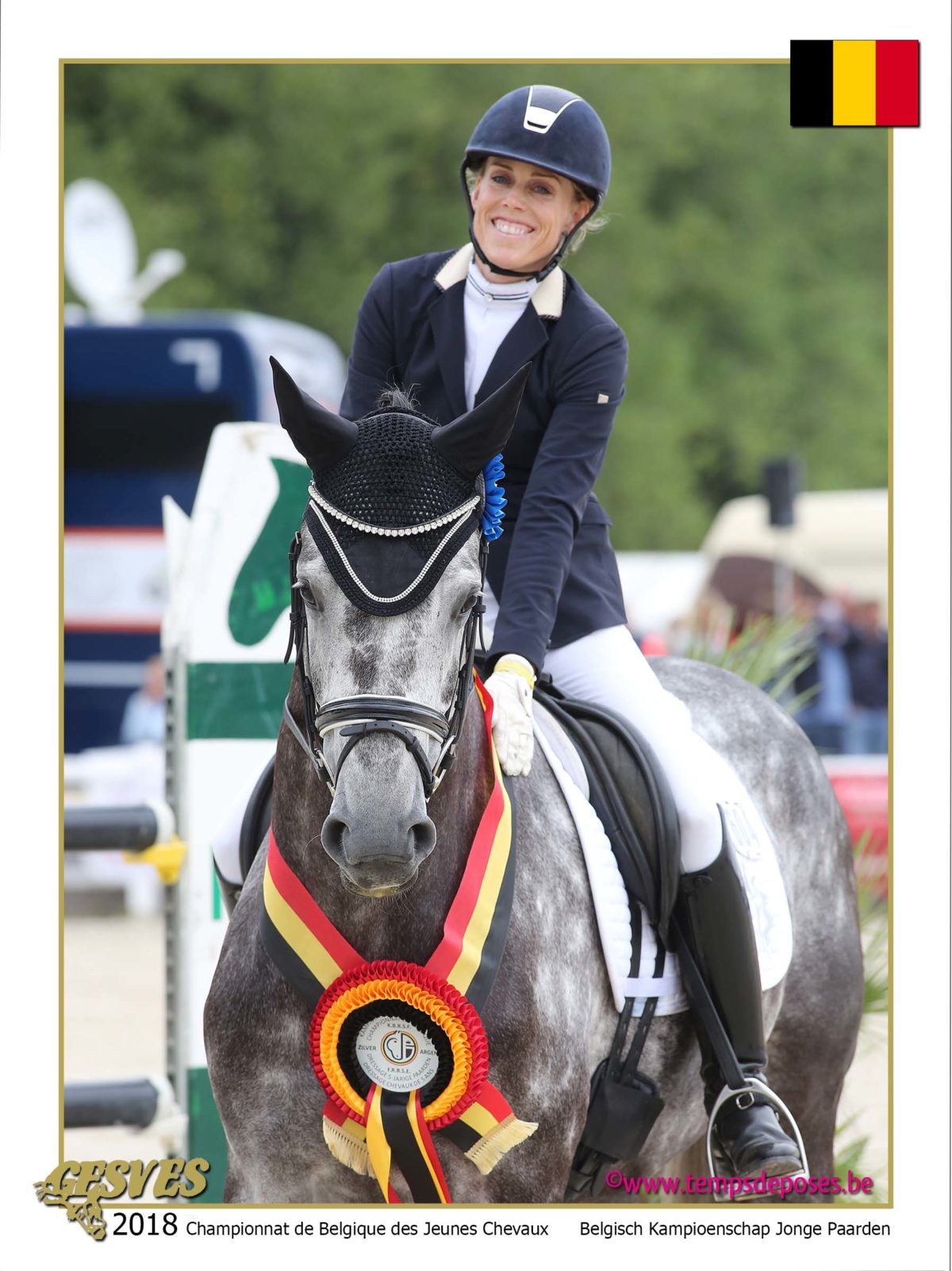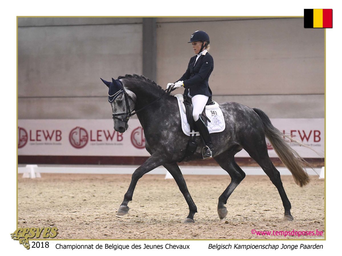 * Gesves, Belgium – 2018 Belgian Dressage Championships for Young Horses – August 13-15, 2018 – Third Place in the Preliminary Test with 80,6%, and Second in the Final (and overall) of the 6 Years Old Championship with 85%.