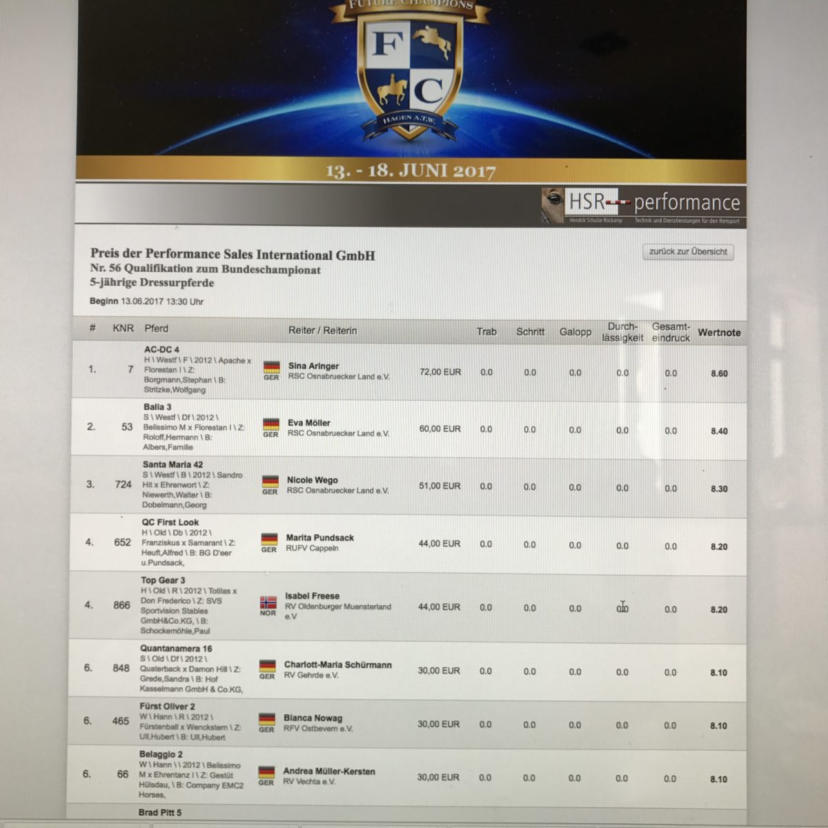 During the Future Champions 2017 competition in Hagen, Germany, Belaggio and Andrea obtained their qualification to participate in the Bundeschampionat – German Championship – for 5 year old dressage horses.