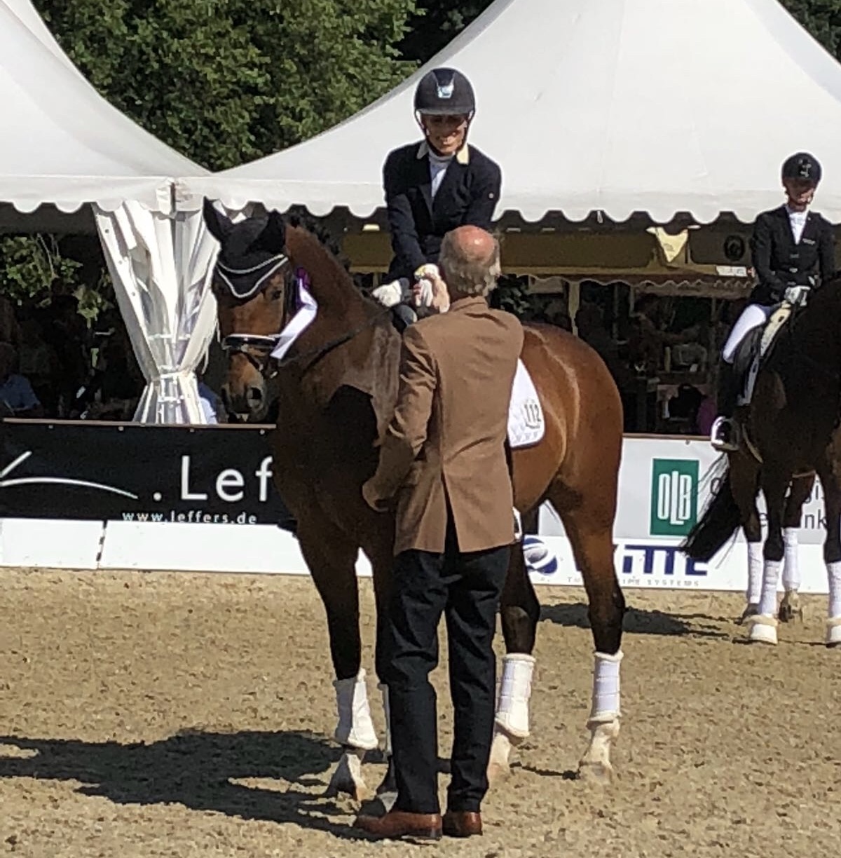 Amongst a field of 21 very strong competitors, including former German and World Championship participants, they confirmed their selection for the Bundeschampionat and showed a very fluid, harmonious and energetic test (despite a small hiccup in the start due to the presence of a drone right above the dressage arena).
