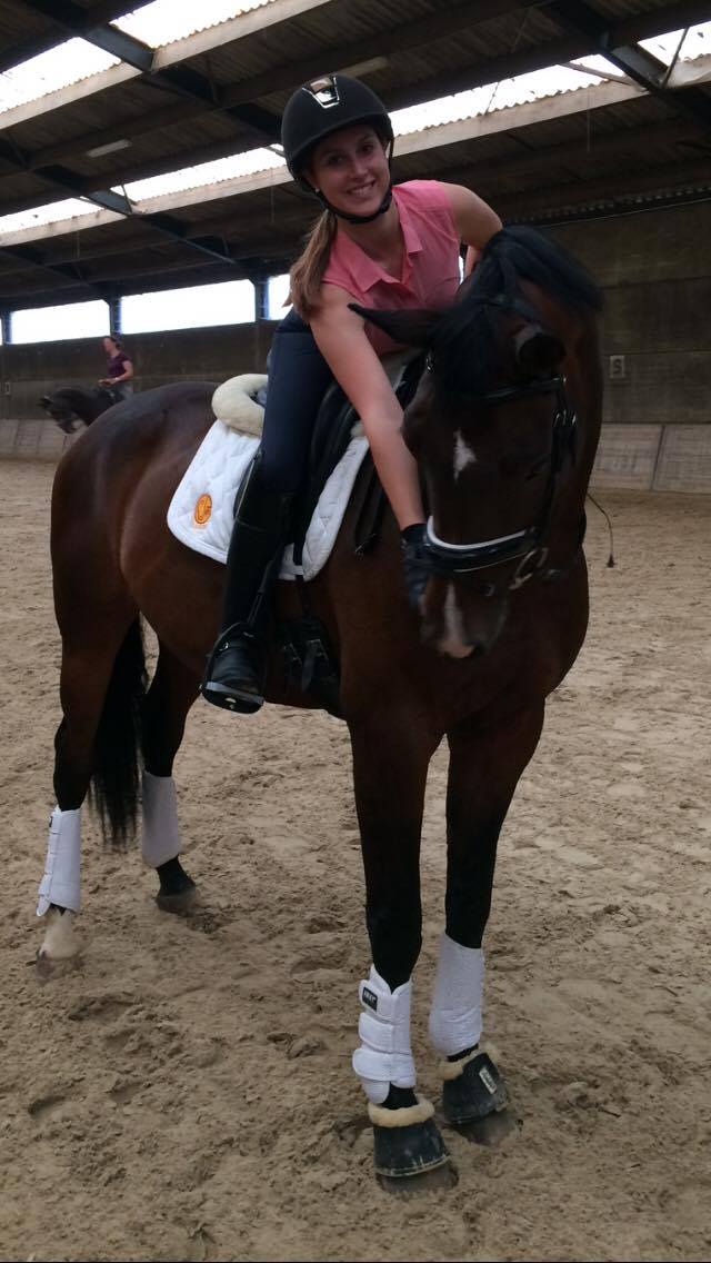 Schneewittchen, a 7 year old bay mare by Scolari x Davignon I, just had a foal and is getting back into training. Ophélie is a passionate and dedicated young rider, who has trained her former horse Tricolore de Wisbecq from elementary to third level in just a few years, and participated twice in the Freestyle competition held during the International event of Malines, arriving twice third. She will certainly train Schneewittchen to participate in high level dressage competitions.