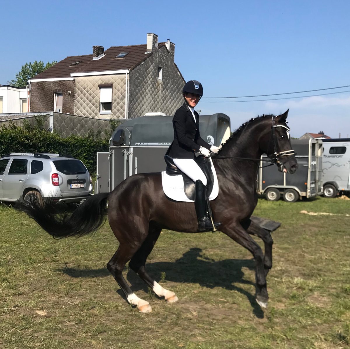 On June 22nd, in Cheratte, Belgium, Elisabeth and Da Vinci won the 5 Years Old Test with 77%. Da Vinci was praised for his very active hind leg and excellent balance in the canter and counter canter.