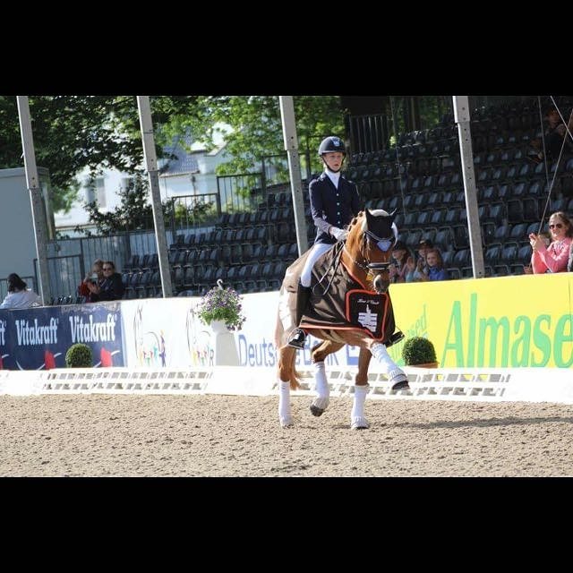 Caro wrote: “I’m sooo happy to be the new owner of Quinto. I love him so much! 😍🦄❤ Here some informations of me: My name is Caroline Lass and I’m 15 years old. Every day I go to my horses. We have our horses at home and this is really cool. In 2017 I won the German Pony Dressage Derby in Hamburg with my incredible goldpony Westerhuis Jorik. We also got in the finale the 7th place at the German Championship 2017. Now Jorik found a new wonderful family with a lovely girl and this makes me very happy! ❤ I also have a horse. His name is Ugrant and our biggest success was the first place in a M** dressage. I really love my horses an I enjoy the work with them. I’m really looking forward to seeing Quinto and I grow together as a team, and I’m curious to see how far we can arrive! 😊❤🦄”