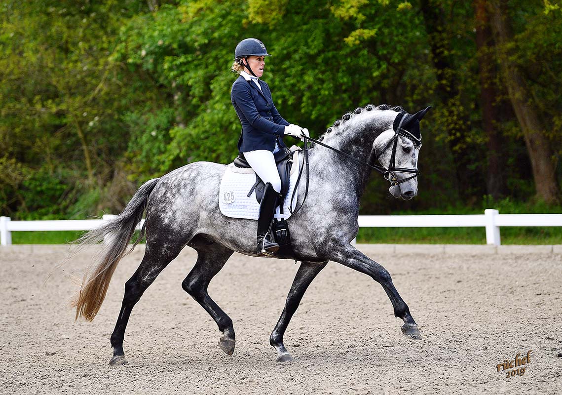 On May 11, in Meppen, Germany, Andrea and Expression finished second in the Dressurpferdeprüfung Kl. A with a score of 8,0. Later in the day, Andrea and Di Magic won the Dressurpferdeprüfung Kl. M with the score of 8,3. Great results for both horses! Wonderful training done by Andrea who will continue to show both horses this season.